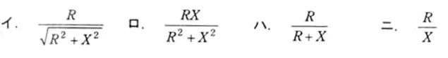1.図のような回路で、抵抗に流れる電流が6〔A〕、リアクタンスに流れる電流が8〔A〕であるとき、回路の力率〔%〕は。